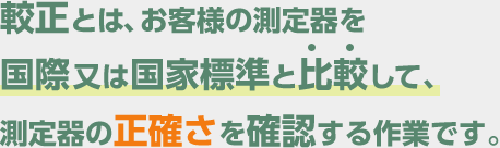 測定値の精度は、御社の製品やサービスの信頼性に直結します。高い信頼性を実現するために、国の標準に結ばれたトレーサビリティ体系のもとで、測定器を定期的に較正することが大切です。